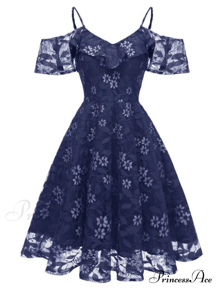 The pink lace dress is more than just stunning! Elegant scalloped lace graces the short, off-the-shoulder sleeves and a playful surplice bodice, all held in place by adjustable straps. The dress is completed by a woven wrap skirt that ends in a flared mini hem.
