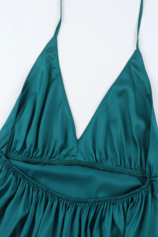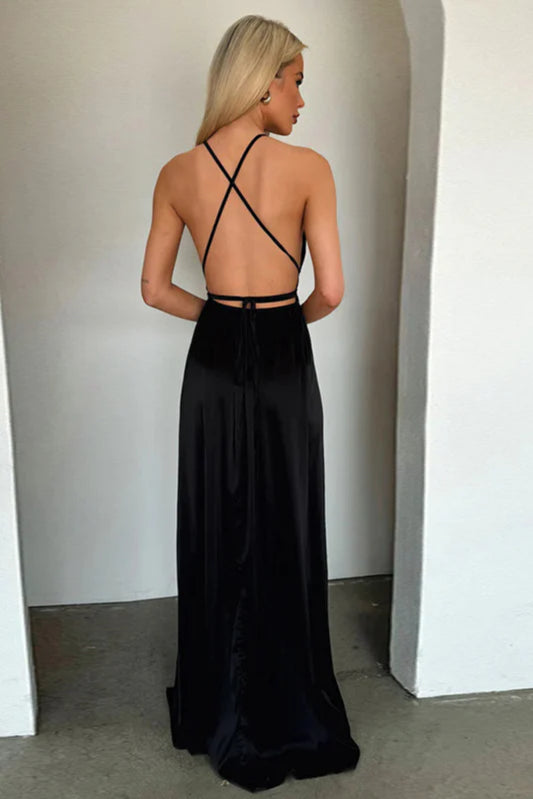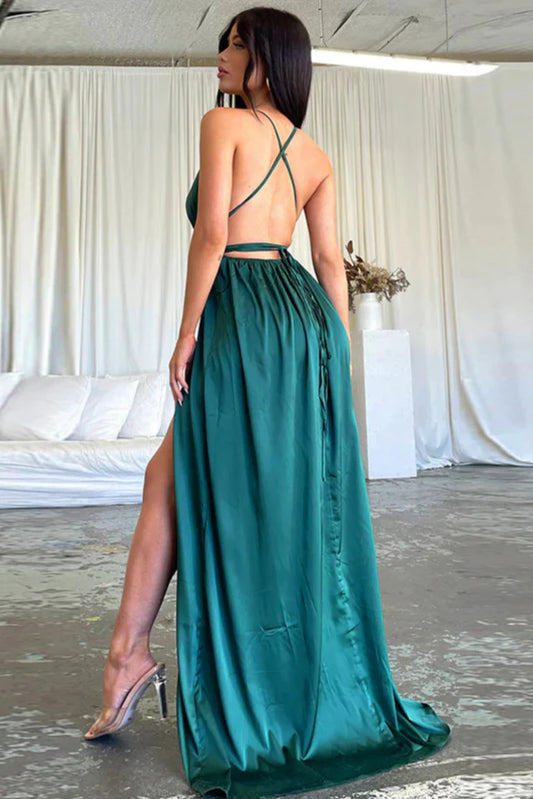 Satin V-Neck Waist-Cinching Split Dress Party Dress