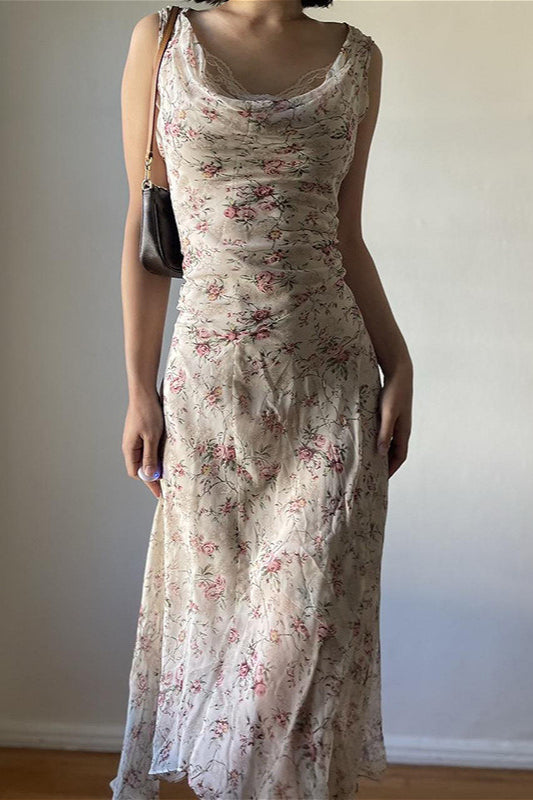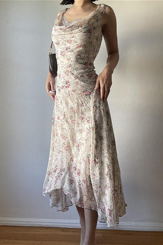 Sexy Asymmetrical Wrap High Waist Slim Maxi Floral Dress