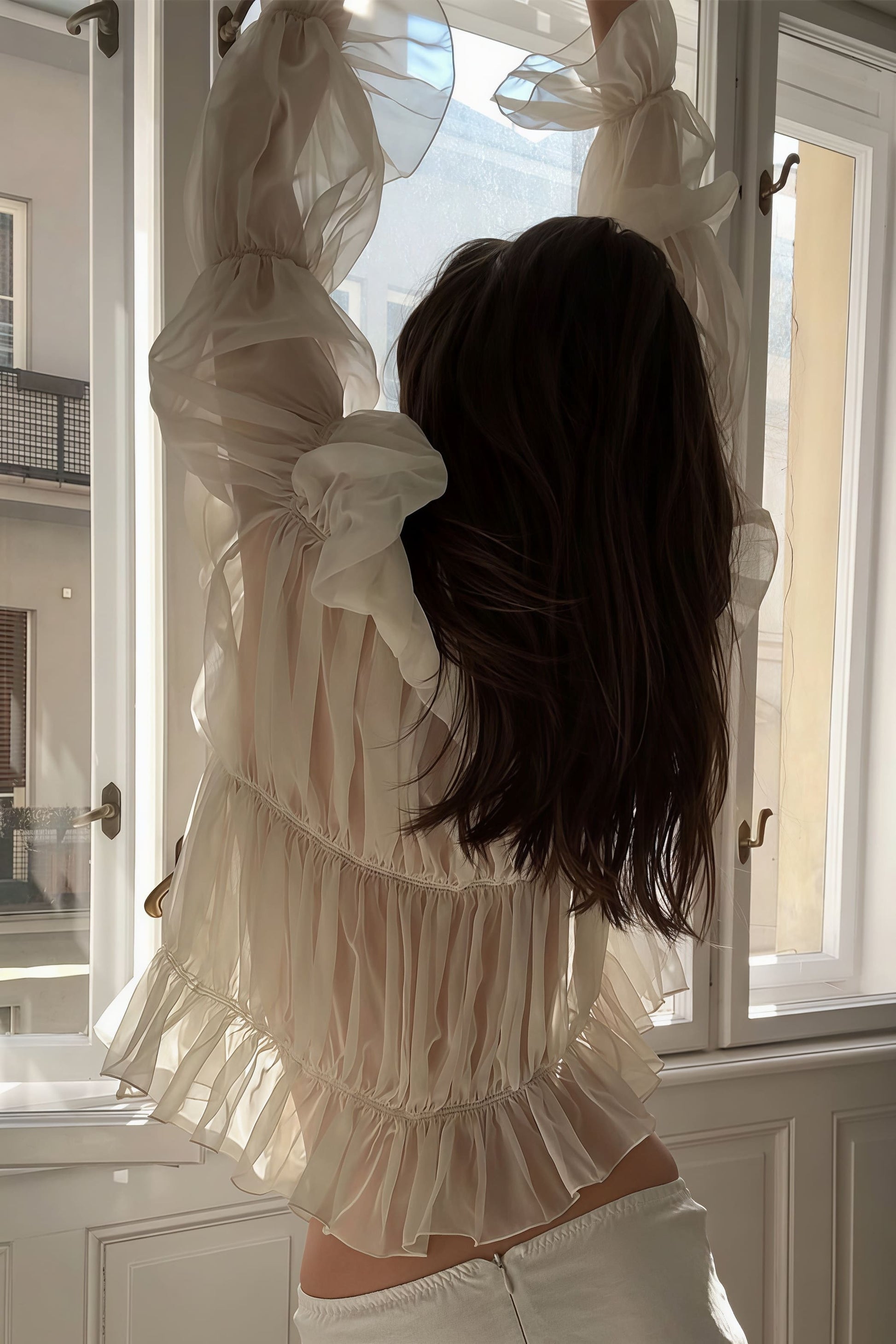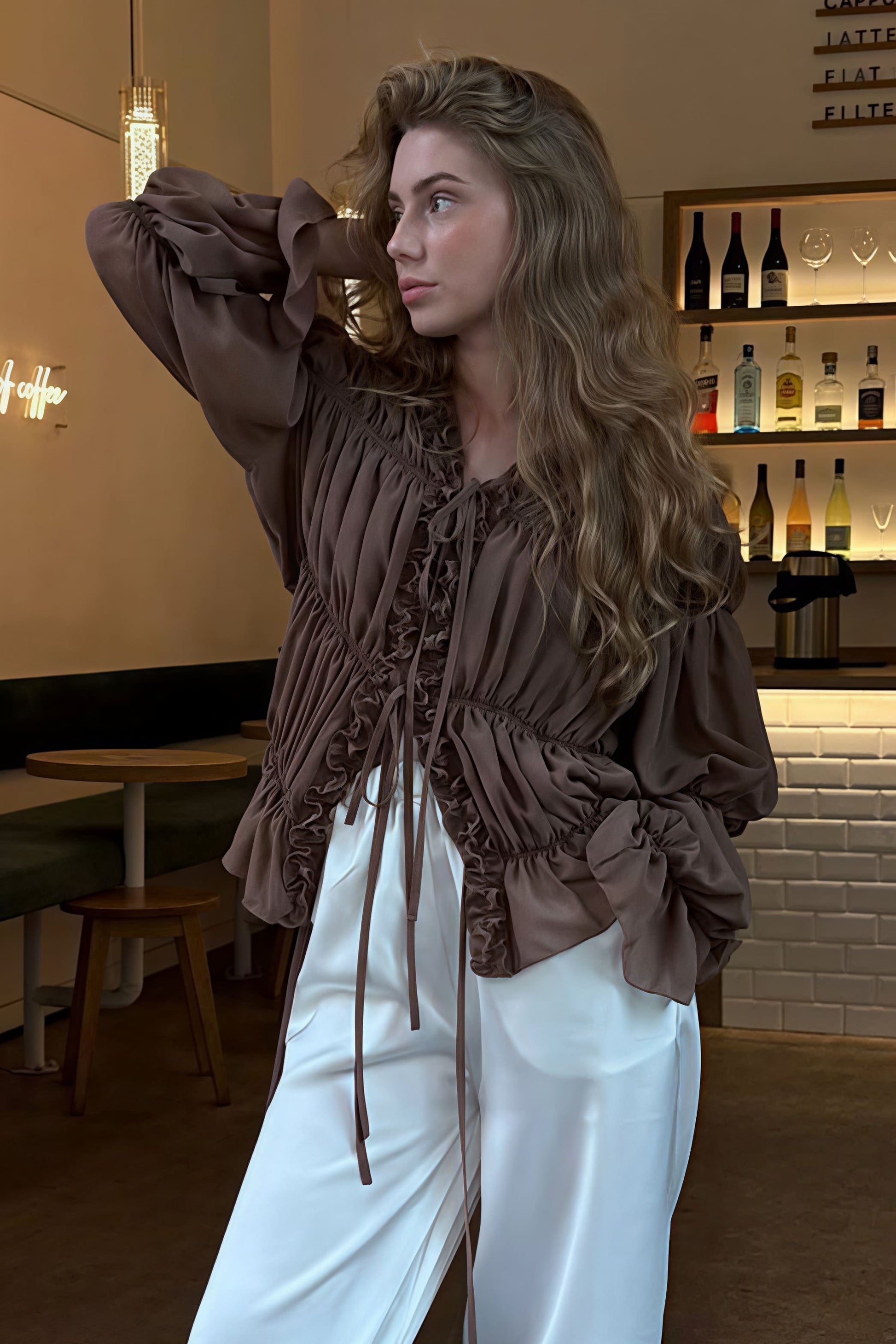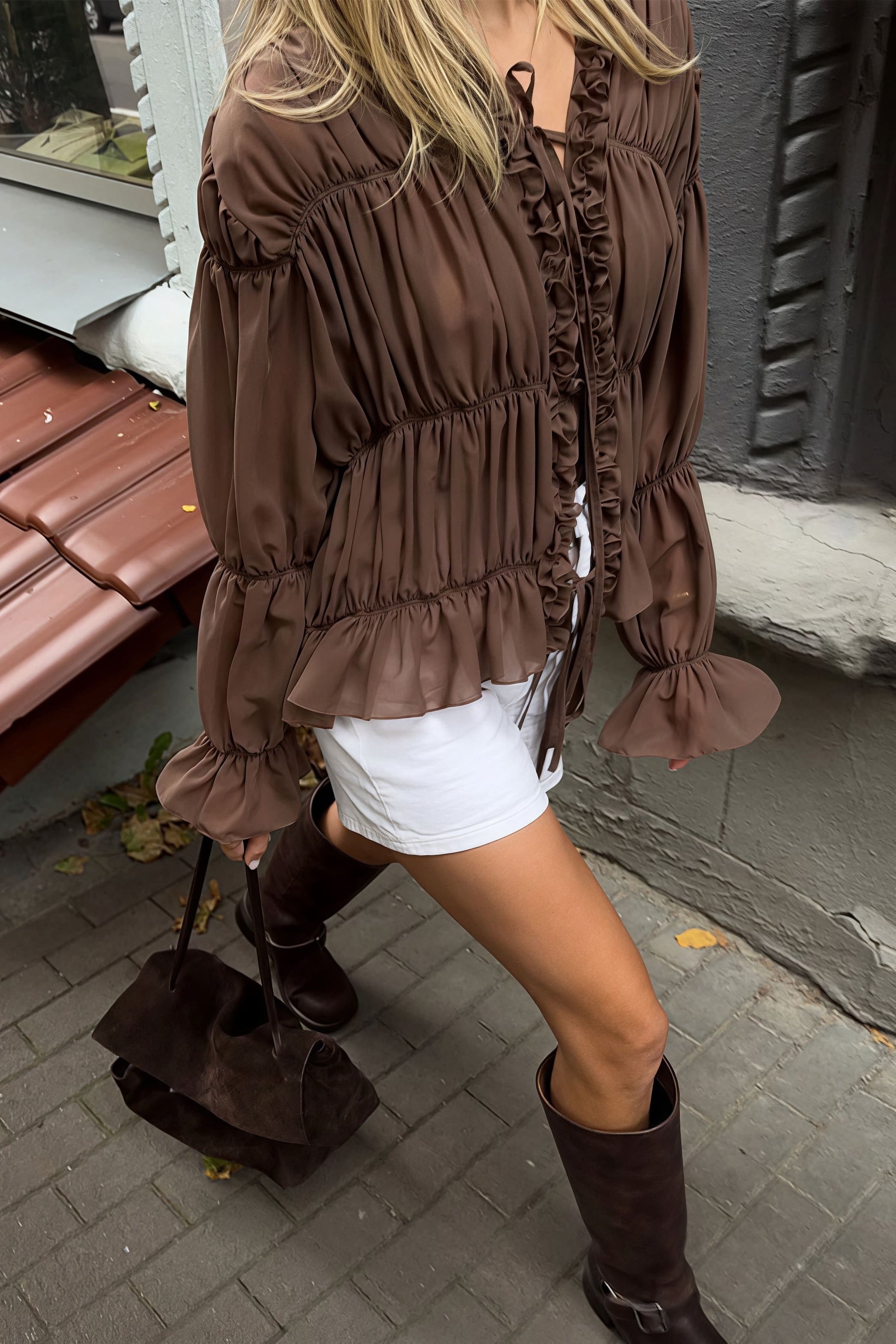 • Details: Tie, Solid Color, Pleated, Ruffle