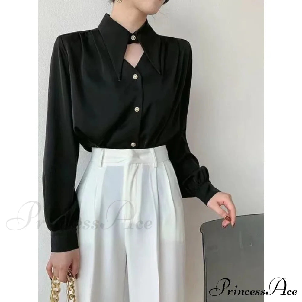 Top Arm Chic Spring Elegant Neckline Turn-down OL Long Blouse Women's Blouse Clothing