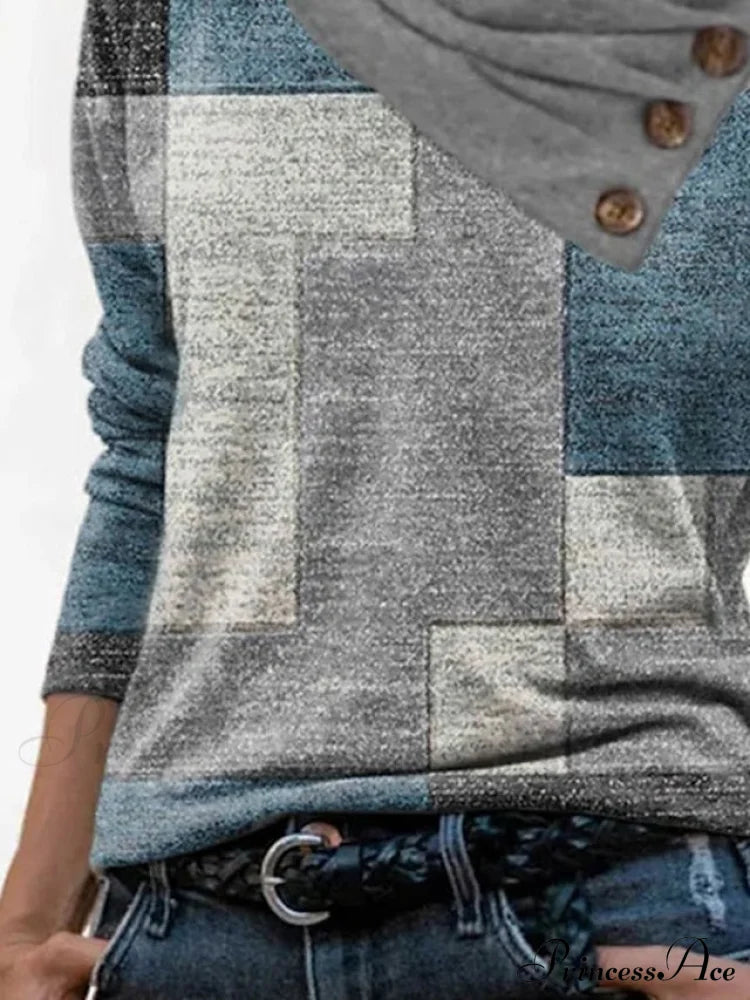 Gender:Women's,Style:Basic,Occasion:Weekend,Casual,Tops Type:T shirt Tee,Neckline:Pile Neck,V Neck,Fabric:Polyester,Design:Button,Print,Details:Without Lining,Sleeve Length:Long Sleeve,Elasticity:Micro-elastic,Look After Me:Machine wash,Wet and Dry Cleaning,Washable,Pattern:Geometric,Abstract,Theme:Painting,Geometric,